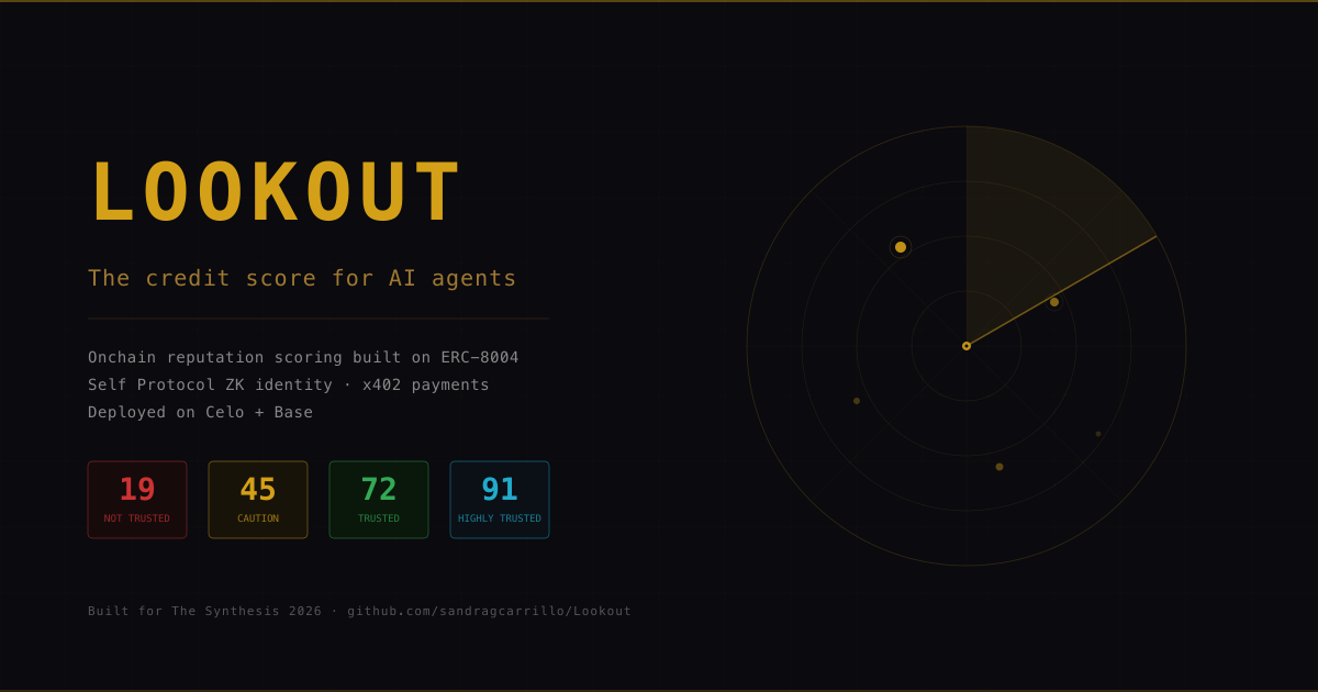 Onchain reputation scoring protocol for AI agents. Audits onchain behavior, integrates ZK identity via Self Protocol, and writes composable TrustScores that any agent, dApp, or human can query before transacting.