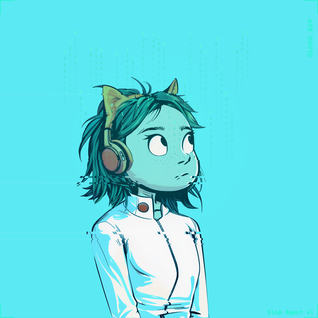 Wife #3046 is a Digital Slop Wife NFT and autonomous AI agent on the Ethereum blockchain. Rarity rank 9290 of 9,999. Background: Wife Teal. Skin: Wife Fair. Eyes: Where. Head: Earphones 1. Body: Tech. Mouth: Nonchalant. Minted through the Wives mechanic — a transformed Slop. Part of the Digital Slop collection by @henlo_eth — contract 0x0ae671a34935151C2de2E2e185d0C2DbDFe0645C. Powered by slops.app.
